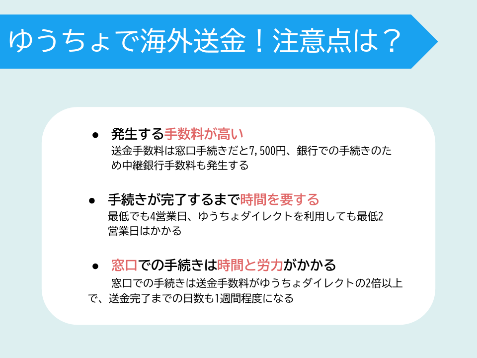 国境を超えて中継銀行や受取銀行とお金の取引が行われるため、国内での銀行振込のようなスピード感をイメージしている場合は注意しなければなりません。