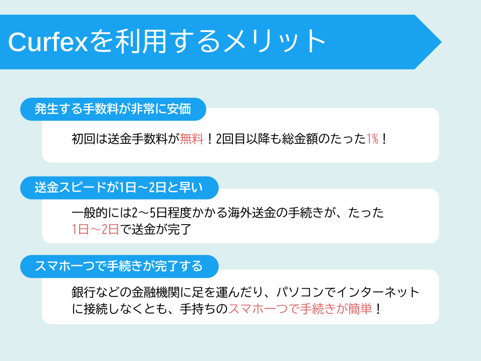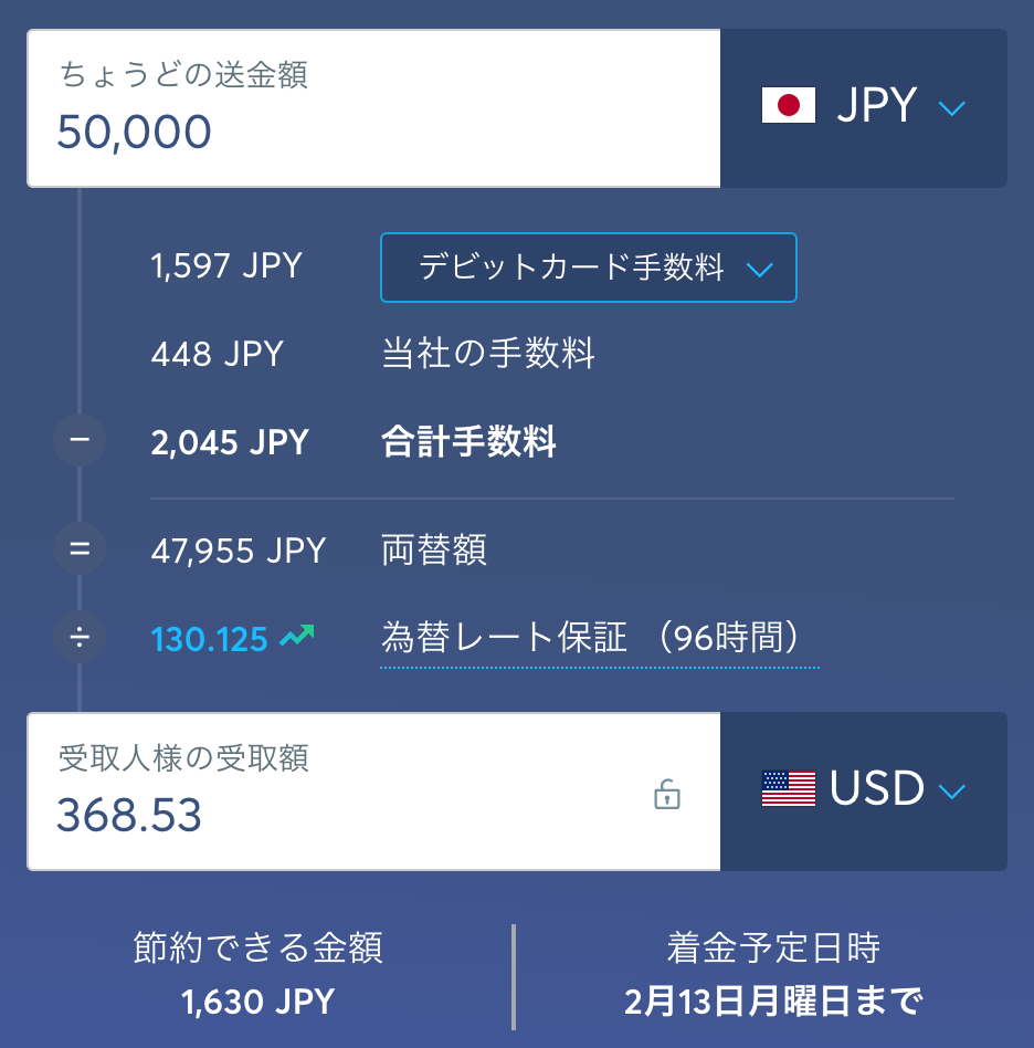 特に初回の送金手続きに関しては手数料が無料のため、コストを大きく抑えることができます。